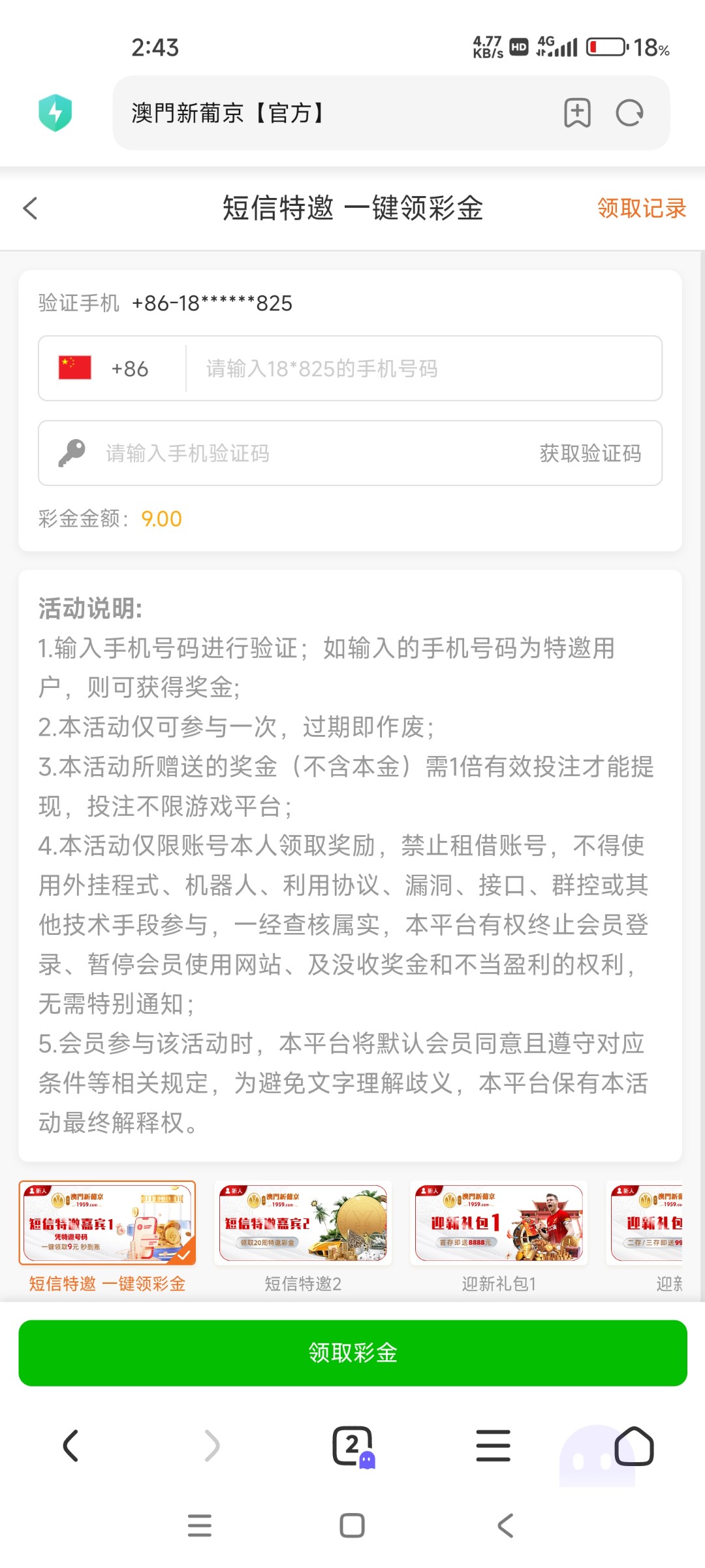 短信特邀活动里领9